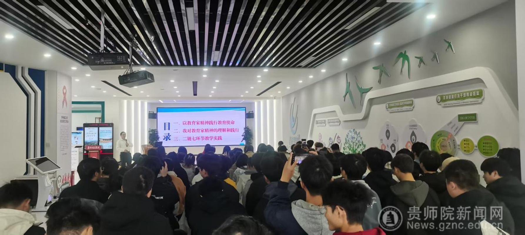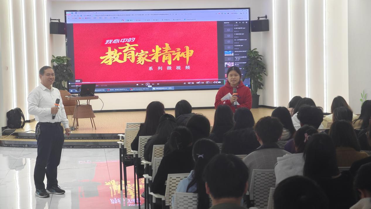 2025年11月4日下午,在大学生活动中心,毕节民族中学杨永忠老师为我院2024级物理学专业师范生作题为“教育家精神引领下的‘二链七环节’教学实践”的专题讲座,本次活动由物理系主任刘家兴主持。 讲座中,杨永忠首先深入解读了教育家精神的核心内涵。他指出,教育家精神蕴含着“心有大我、至诚报国的理想信念”“启智润心、因材施教的育人智慧”等关键特质,是新时代教育教学实践的“精神灯塔”,为教学改革提供了价值引领与方向指引。 基于此,杨永忠详细阐述了“二链七环节”教学实践体系的构建与应用。“二链”即“问题链”与“思维链”,前者作为学科知识的系统传授与七环节的支撑,后者则在学科教学中作驱动和渗透核心素养;“七环节”则涵盖“学情诊断、目标锚定、内容重构、活动设计、互动实施、评价反馈、反思优化”,形成了一套闭环式的教学流程。他教学案例,具体演示了如何以教育家精神为引领,将“二链”的内在逻辑贯穿于“七环节”的每一步实践中,例如在“内容重构”环节挖掘知识背后的育人价值,在“互动实施”环节践行因材施教理念,让教学既有“知识的深度”,又有“育人的温度”。 现场互动环节,参会者围绕“‘二链七环节’在小班化教学中的调整策略”“如何平衡知识传授与育人价值渗透”等问题积极交流。杨永忠结合自身教学研究经验逐一解答,提出“立足学情灵活适配、聚焦核心素养精准落地”的实践建议,引发在场人员的深度思考。此次讲座清晰阐释了教育家精神与教学实践的融合路径,“二链七环节”体系具有很强的可操作性,为今后的教学改革提供了切实可行的参考。 此次讲座的举办,不仅深化了同学们对教育家精神时代价值的认知,更通过“二链七环节”的实践分享,为同学们搭建理念与实践对接的桥梁,对推动教学质量提升、促进学生全面发展具有重要的指导意义。 文/图:刘家兴 一审:岳天天 二审:蔡晶 终审:刘高福
