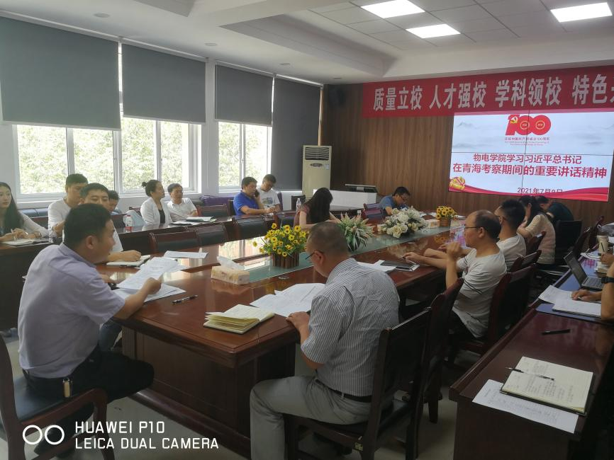 2021年7月9日,物电学院在宁静楼419集体学习习近平总书记在青海考察期间的重要讲话精神,会议由党委书记熊德永主持,全体教师参加此次会议。 院党委书记熊德永带领全体教师学习领悟习近平总书记视察青海时的重要讲话精神。习近平总书记视察青海,先后来到西宁市、海北藏族自治州等地,深入企业、社区、自然保护区、农村牧区等,就高质量发展、加强基层党建和完善基层治理、生态环境保护、乡村振兴、民族团结进步创建等进行考察调研,并发表重要讲话,擘画了青海立足新发展阶段、贯彻新发展理念、构建新发展格局的奋进蓝图。 熊德永强调,习近平总书记十分重视在全党开展党史学习教育,将党史学习教育的主要要求概括为16个字,即“学史明理、学史增信、学史崇德、学史力行”。习近平总书记在福建考察时就“学史明理”作了深刻论述,在广西考察时就“学史增信”作了深刻论述,这次在青海考察时就“学史崇德”作了深刻论述,清晰阐明了“学史崇德”三个方面的重要内涵。习近平总书记强调,在党史学习教育中做到学史崇德,就是要引导广大党员、干部传承红色基因,涵养高尚的道德品质。保护好青海生态环境,是“国之大者”,是我们党贯彻落实党的十九大精神,践行绿色发展理念的生动体现。作为一名教师,要践行习近平总书记重要讲话精神,在教书育人中加强生态文明宣传教育,强化学生环境意识,树立绿色生活理念,推动形成节约适度、绿色低碳、文明健康的生活方式和消费模式,形成良好风尚。 学习结束,教师们深刻领会习近平总书记的重要讲话精神,纷纷发表感想,大家一致认为习近平总书记指出的“我们党在百年奋斗中,培育形成了一系列各有特点的革命精神,集中体现了党的坚定信念、根本宗旨、优良作风,是激励我们不懈奋斗的宝贵精神财富”。物电学院党委要扎扎实实贯彻习近平总书记的要求,在党史学习教育中做到学史崇德,崇尚对党忠诚的大德、崇尚造福人民的公德、崇尚严于律己的品德,引导广大党员、干部传承红色基因,把党史学习教育不断引向深入。