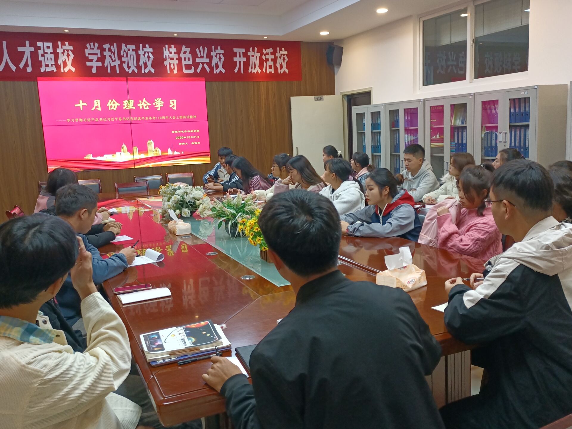 十月寒秋之际,为了进一步加强物电学子理论知识储备,提高自身思想政治素养,10月31日晚,物电学院团委在学院会议室召开了“学习习近平总书记在纪念辛亥革命110周年大会重要讲话精神”理论学习会。本次会议由物电学院团委学生副书记岳俊杰主持,团委指导老师杨开青,团委学生会各部门代表参加了本次会议。 会上,岳俊杰带领大家学习了习近平总书记在纪念辛亥革命110周年大会重要讲话精神,对习近平总书记所指出的辛亥革命的历史意义以及现实意义进行了详细解说。他表示,新时代的我们,要明确新时代青年的使命和任务,积极向党靠拢,坚决拥护中国共产党的领导,努力提升本领,为实现中华民族伟大复兴的中国梦而奋斗。 随后,杨开青作学习总结,他对同学们提出来两点要求:一是积极学习党史,汲取革命先辈力量,锤炼品格意志,做新时代优秀青年,为建设美丽祖国不懈奋斗;二是从身边小事做起,从细节做起,立志成为德智体美劳全面发展的共产主义接班人。 本次理论学习,为今后开展学生工作提供了思想政治保障。相信在学院党委的带领下,物电学院团委将会更好地为我院学生服务。