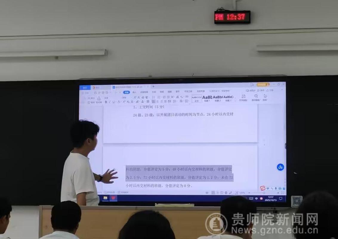 为进一步夯实基层团组织建设、明确新学期团务工作方向,10月15日,物电学院于宁静楼427教室召开新学期团支书工作培训会。团委学生会组织部副部长陈俊宇与各团支部书记参加本次会议,共同为新学期共青团工作高效开展做足准备。 会议上,陈俊宇围绕团支书核心工作展开部署:明确每月需推进团日活动与理论学习,规范《团支部工作一本通》记录,落实“一学期2次支部团员大会、一年12次支部委员会”的要求,同时完成业余团校学员名单收集及智慧团建主题团日录入工作。针对工作优化,他提出多项举措:团日活动与理论学习需强化政治思想建设,并新增同学政治素养考核;完善活动流程,从填写时间安排表、提前报备活动场地与具体时间,到活动后规范提交材料,均明确了具体要求。此外,他指出24、25级9月团日活动存在时长不足、材料命名不规范等问题,还安排了25级团籍遗失补开证明、核对本班智慧团建团员录入情况,以及提醒各班同学第三十二期业余团校上课时间等近期工作。 本次会议明确了团支书工作标准与优化方向,不仅能解决过往团日活动时长不足、材料混乱等问题,推动团务工作规范化、高效化,更能通过强化政治思想建设与素养考核,提升团员政治意识,筑牢团支部思想根基。同时,清晰的近期工作安排可保障团籍管理、业余团校等工作落地,进一步增强团支部凝聚力与组织力,为后续团务工作高质量开展奠定坚实基础。