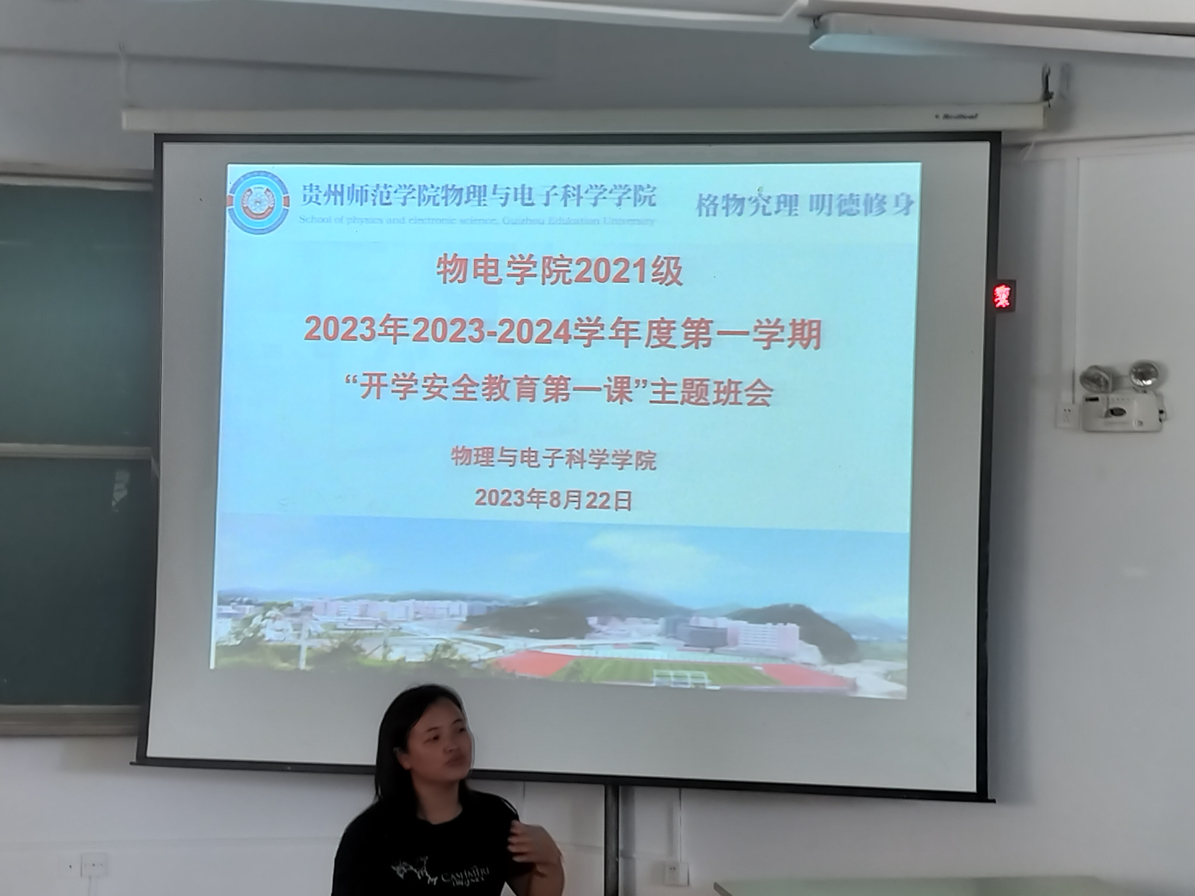 为深入贯彻落实全省教育系统2023年秋季学期开学部署会会议精神,进一步保障学院学生生命和财产安全,提高学生安全防范意识。物电学院于8月21日-8月21日在宁静楼开展了2023年秋季学期“开学安全教育第一课”主题班会,会议由辅导员雷仕娜、杨开青分别主持召开,2020级、2021级、2022级全体学生参会。 会上,辅导员们从防溺水、防网络诈骗、食品卫生安全和健康卫生、实验室安全和宿舍管理及消防安全、交通安全、实习和集体活动安全、心理健康七个方面开展安全教育,引导同学们做好人身、财产安全防范及保持积极健康的心理状态迎接新学期的到来。最后,辅导员对学生们新学期的学习提出要求,希望同学们制定好新学期的学习、生活、职业方面的规划,努力提升自己的综合能力。 通过此次班会,增强了学生安全防范意识,提升了学生自我保护能力,引导学生进一步改进学习方法,为提升学院学风打下坚实的基础,为开学的各项工作提供了有力保障。