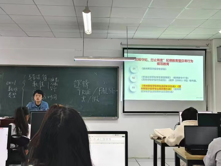 为了强化学生纪律教育和日常行为规范引领,促进学院学生养成良好的学习和生活日常文明行为习惯,强化学生自我管理机制,增强纪律意识、规矩意识,全面了解学校各项规章制度。2023年11月3日-11月9日,6776永利集团各级辅导员、班主任分别组织各年级学生通过线上、线下开展了“‘知规守纪、行止有度’纪律教育暨日常行为规范教育”主题班会。 在班会中,各年级辅导员和班主任主要带领学生们一起学习了《yl6776永利集团学生手册》,重点学习了《普通高等学校学生管理规定》(教育部令41号)《高等学校学生行为准则》(教学〔2005〕5号)《yl6776永利集团学生违纪处分办法》《yl6776永利集团学生公寓管理办法》《yl6776永利集团学生请假和外出管理办法》等内容。同时,辅导员、班主任们结合具体案例,从树立法治思维、增强规矩意识,谨记制度规定、知文件精神、做有为青年等多个方面系统讲解了大学生遵纪守法、做文明有为青年的重要性。 通过此次主题班会,进一步促进学院学生树立正确的人生观、价值观和世界观,提升纪律意识和责任意识,促进学生德智体美劳全面发展,为建设师院“求真务实,自强不息”的校风和“立志勤学,知行合一”的学风,营造文明和谐安全的育人环境贡献力量。