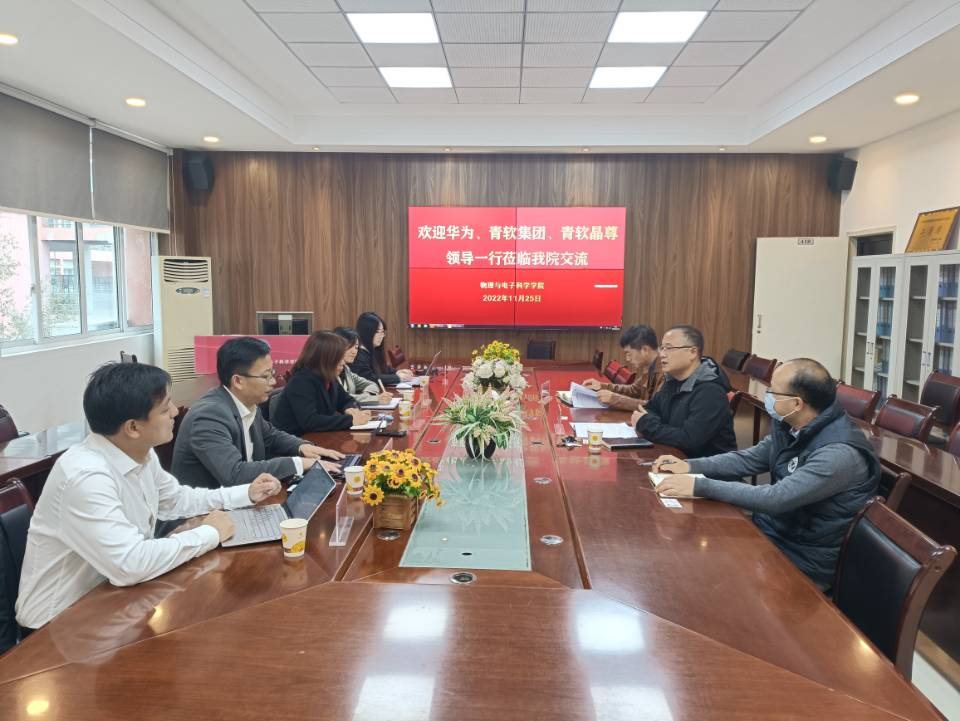 11月25日上午,华为云贵州教育负责人兼鲲鹏创新中心COO曲胜男、青软集团副总裁冯秀均、青软集团西南区市场总监陈铁柱、青软晶尊微电子公司市场总监李朝杰一行莅临我院开展集成电路产教融合基地校企共建交流洽谈,学院副院长陈德良、学院党委副书记于治鳞,集成电路专业教师邓睿、莫章洁参加洽谈会,本次会议由陈德良主持。 会议伊始,陈德良对各位企业领导支持学院专业校企平台共建的到来表示欢迎并介绍了学院的基本情况,特别是新开设的集成电路专业,阐述了学院在集成电路专业建设的发展规划和需求,希望双方在集成电路人才培养、专业建设和科教平台方面进行全方位的深度融合。随后,企业领导结合集团公司的发展领域,详细讲解了集成电路产教融合基地建设可行性、目标、规划、整体架构和实施计划等相关内容。交流阶段,于治鳞就双方的合作方式和基地建设的定位与企业进行了沟通交流,提出基地的建设要明确应用型的定位,适合集成电路专业人才的特色培养。集成电路系主任邓睿详细了解了青软晶尊微电子公司在集成电路设计领域的研发情况,表示希望青软晶尊在集成电路开发软件开放、实验室共建共享、课程体系共建、师资培训及共享和实习实训基地等方面能够深度合作。 这次交流会为学院新专业的发展拓宽了校企合作的思路,为专业人才的培养、科教平台的建设奠定了基础,双方将根据此次会议达成的共识进行下一步的工作。