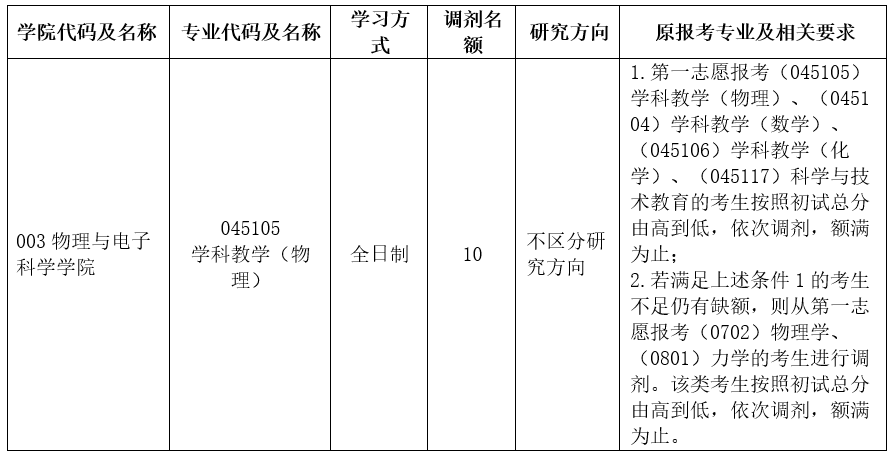 yl6776永利集团物理与电子科学学院 2025年硕士研究生招生调剂公告(一) 根据《yl6776永利集团2025年硕士研究生复试录取工作办法》《yl6776永利集团2025年硕士研究生招生调剂工作办法》等文件精神,为做好6776永利集团2025年硕士研究生招生调剂工作,现将我院调剂专业、调剂程序等信息公告如下: 一、调剂专业信息