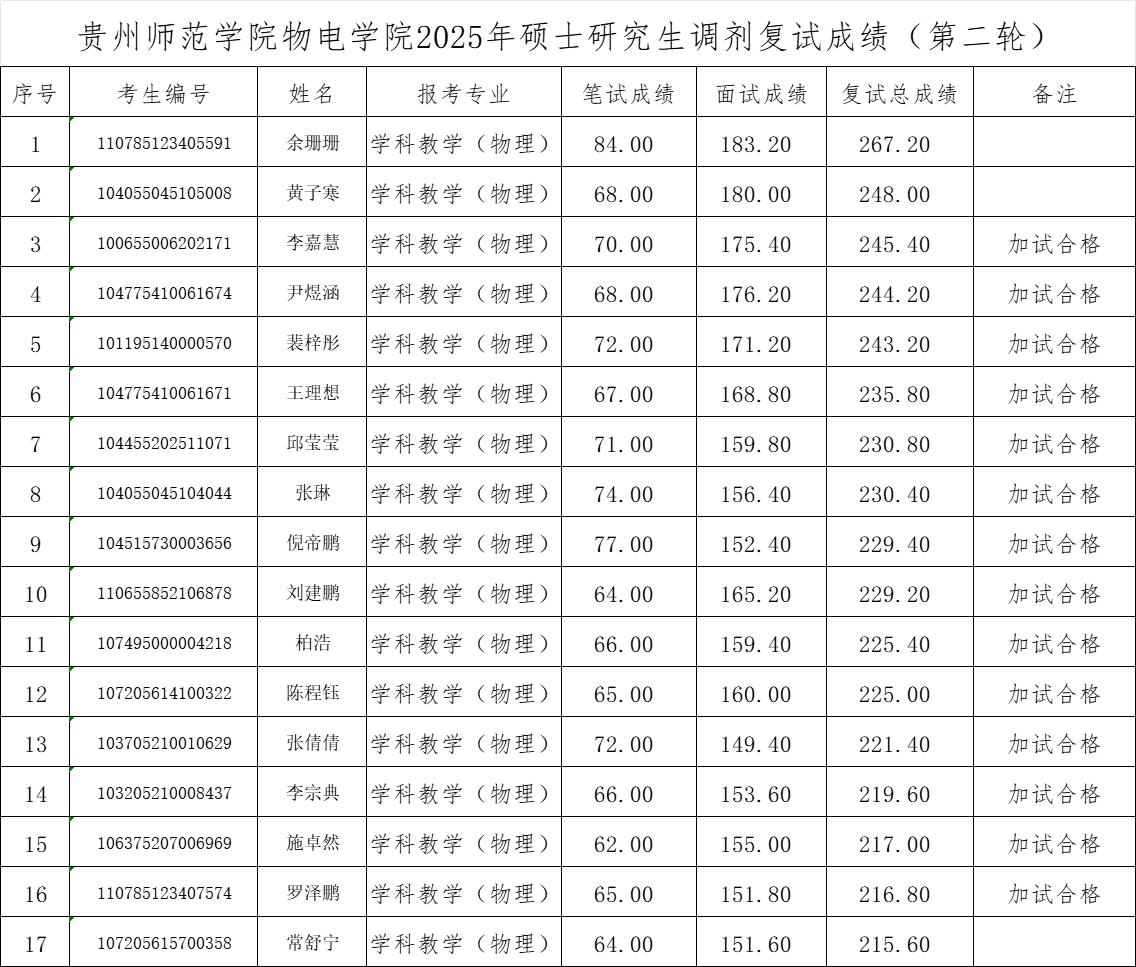 yl6776永利集团物电学院2025年硕士研究生调剂复试成绩(第二轮)