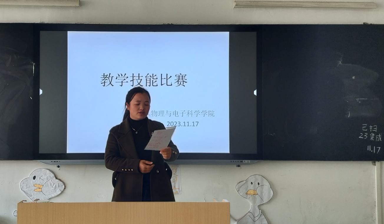 为适应新形势下的教学改革,加强我院师范生的基本功训练,提升教学技能,物电学院于本学期实践周组织2022级物理学专业师范生开展粉笔字比赛活动。 本次活动分为班级预选和学院比赛。经过班级预选,每班推荐5名同学参加院级比赛。院级比赛于11月17日下午举行在宁静楼430教室举行,由物理学专任教师陈秋松、雷仕娜担任评委,2022级物理学专业全体同学观看此次比赛。比赛分说课和授课两个环节,参赛者需要进行5分钟的说课以及10分钟的授课。本次比赛的选题范围涵盖了高中和初中两个学段。 比赛过程中,参赛同学充分展示了自己独特的教学技能和才华。他们用简洁明了的语言,将自己的教学思路和教学方法阐述得清晰易懂。在说课环节,同学们以流利的语言表达了自己的教学思路和教学方法,将课堂情境栩栩如生地呈现出来。在授课环节,同学们以饱满的热情和生动有趣的方式,引导观看的师生们积极思考、主动参与,营造了热烈活跃的课堂氛围。参赛选手教态自然得体、教学思路清晰、语言表达准确,充分显示了我院学生扎实的教学功底。陈秋松老师和雷仕娜老师对参赛同学的良好表现给予了充分肯定,对同学们在比赛中应注意的问题进行了点拨,同时对物电学院学生专业教学技能的提高表示了祝贺。 本次比赛不仅提供了一个展示学生教学技能的舞台,更为学生们提供了一个互相学习、互相借鉴的机会。通过比赛,学生们可以发现自己的不足之处,进而提升自己的教学技能。